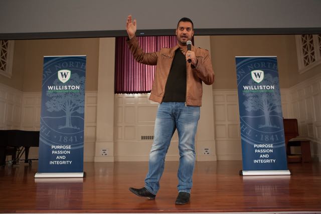 On January 19, as part of a celebration of Martin Luther King, Jr. Day, keynote speaker Haider Hamza challenged Williston Northampton School students and faculty to examine the causes of violence, and use that understanding to help stop it.