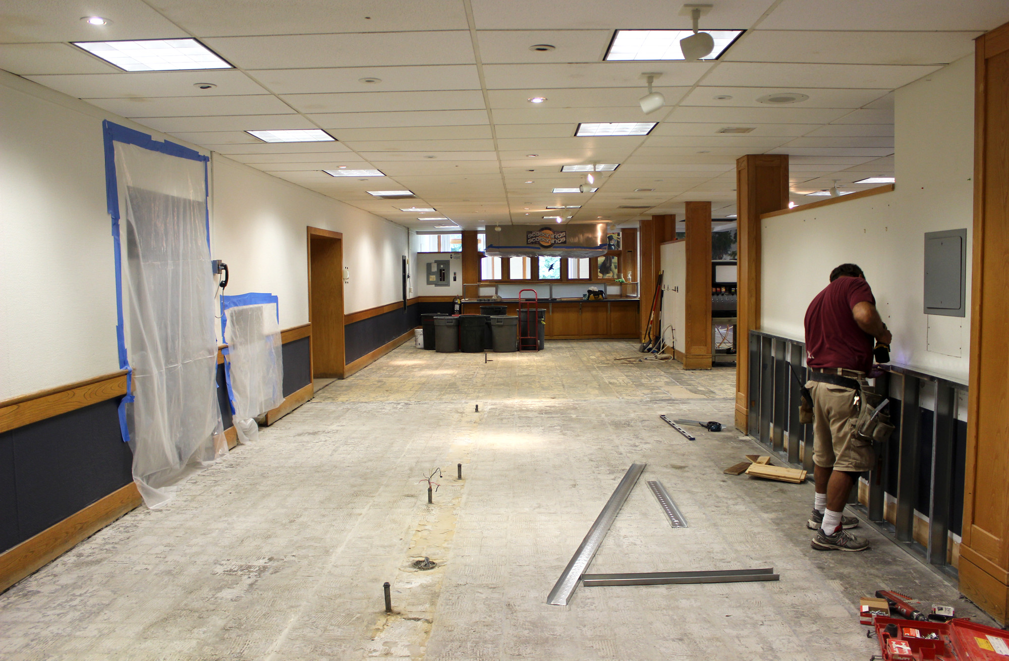 In the StuBop, an accompanying remodel kept the grill but removed the former front counter and tile floor. In its place, the popular eatery will have a grab-and-go station, fountain drinks where students can refill their water bottles, and biodegradable containers. Mr. McCullagh said the changes were prompted by visits to similar eateries at the University of Massachusetts Amherst, arranged by former Williston trustee and UMass Ombudsperson Catherine Porter.