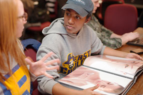 As the lecture was winding to a close, Mr. Diodato turned to images of his fine art work: portraits of a pierced and tattooed man sitting on a background so vibrantly red it was almost tactile; and haunting photos of the Oregon State Mental Hospital he published as a monograph in Care of Ward 81. In the end, though, and despite the successes and acclaim he has achieved, Mr. Diodato took a modest view of his photography.