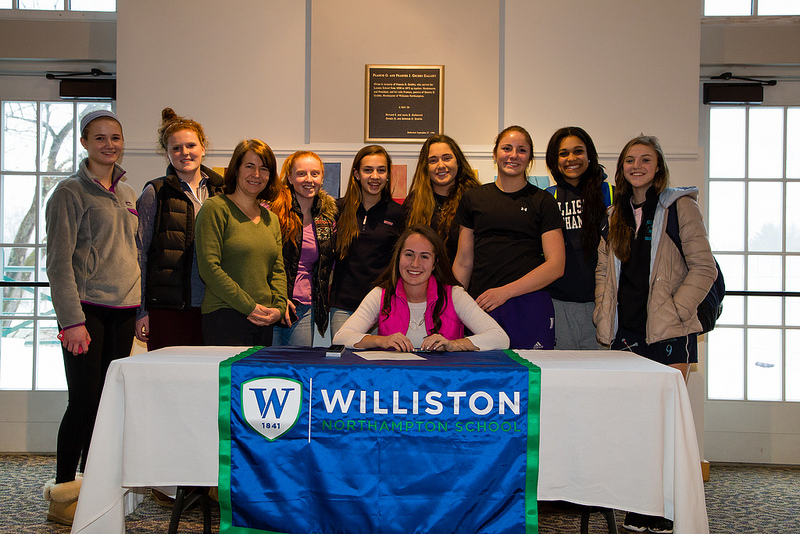 On Friday, as she committed to Dartmouth College—finalizing an agreement that she had first made as a sophomore—Gia Parker ’14 was surrounded by not one, but two teams.