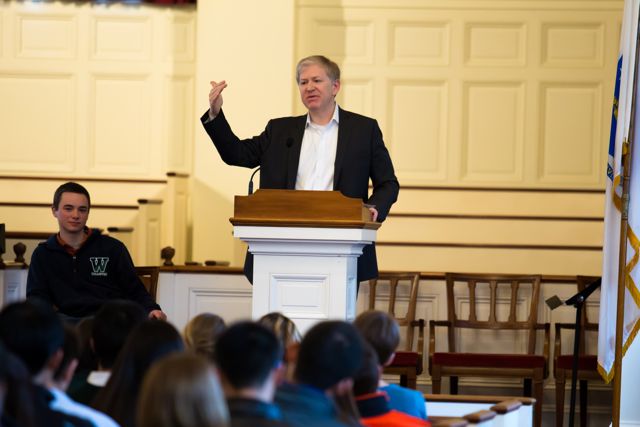 As an alumnus with many ties to Williston—his sister, Paula Monopoli, is class of 1976 and his niece, Alexandra Lewis, is a current senior—Mr. Monopoli was on campus to speak to students about the lasting legacy of the Williston experience.