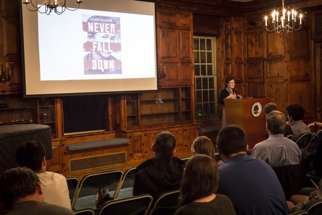 For her book Never Fall Down, Ms. McCormick worked closely with Arn Chorn-Pond, who survived the Cambodian genocide and Khmer Rouge labor camps when he was a teenager. After showing a short film with interviews from Mr. Chorn-Pond, Ms. McCormick talked about how she took that deeply personal story and turned it into a novel.