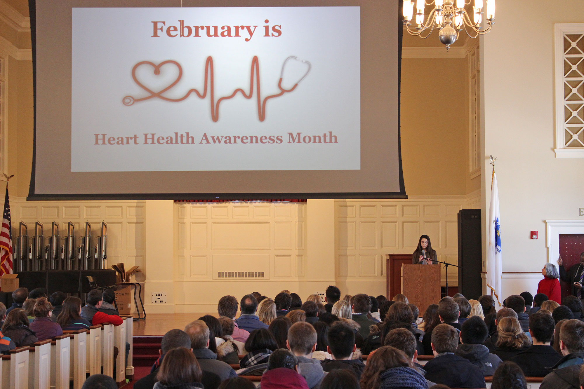 Dr. Ware, a former Williston faculty member, had returned to campus to speak about his own experiences for Heart Health Month. The event was organized by Jordan Sansone ’17, her advisor Ann Pickrell, and Assistant Director of Athletics and Head Athletic Trainer Melissa Brousseau. Later that afternoon, Ms. Sansone also offered a screenings and a confidential six-point questionnaire for students in the Athletic Center during a girls basketball game.