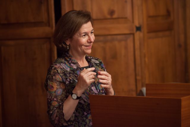 In her talk at the Grubbs Gallery on September 23, author Joan Wickersham offered to break down the minutiae of two of her books, about suicide and love, respectively.