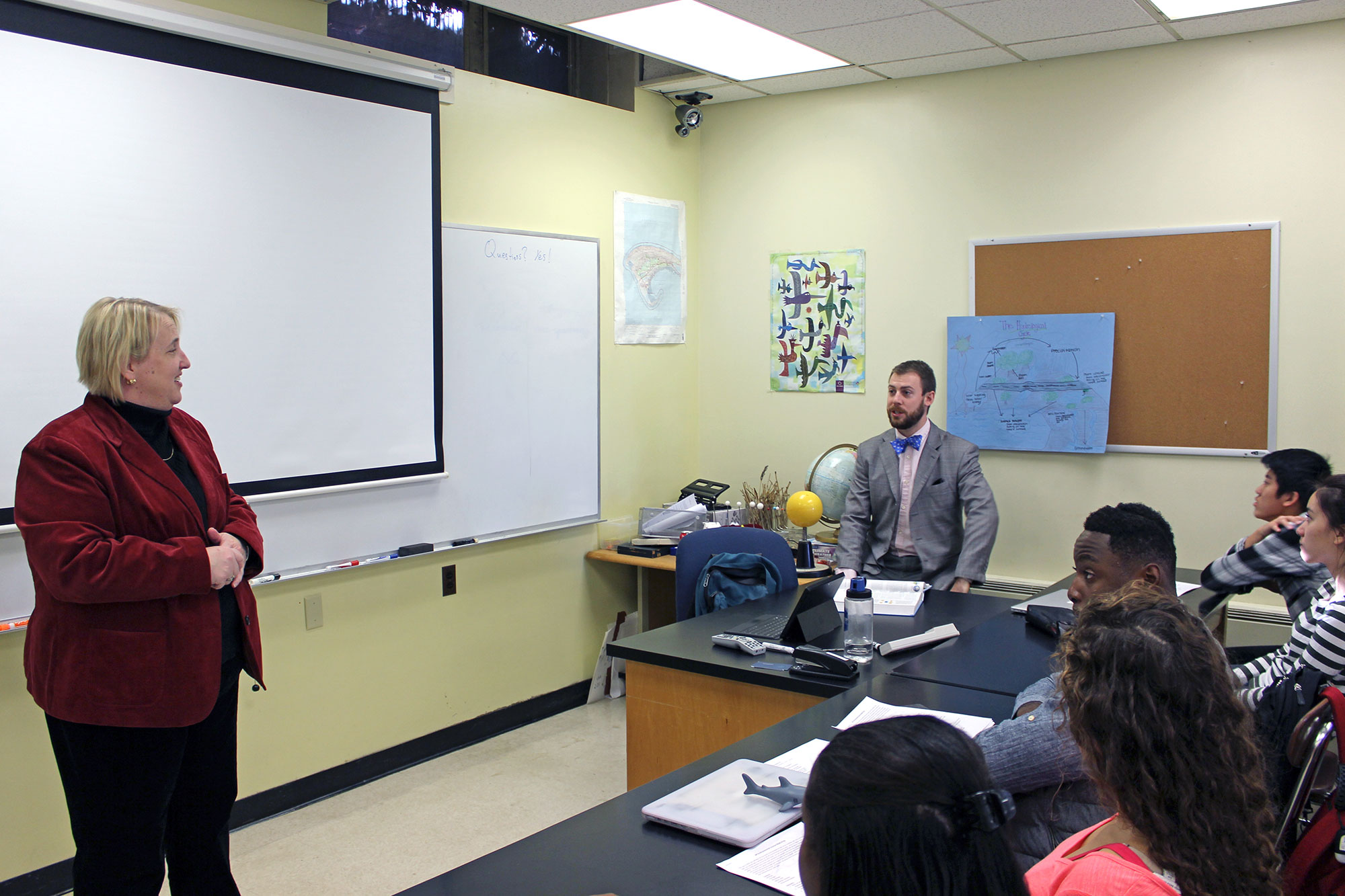 When the special visitor walked into Matt Spearing’s AP Environmental Sciences classroom on Friday, she had to pause for a moment. The room, with its lab tables, late afternoon light filtering through the windows, and fish swimming in a small tank, felt very familiar.