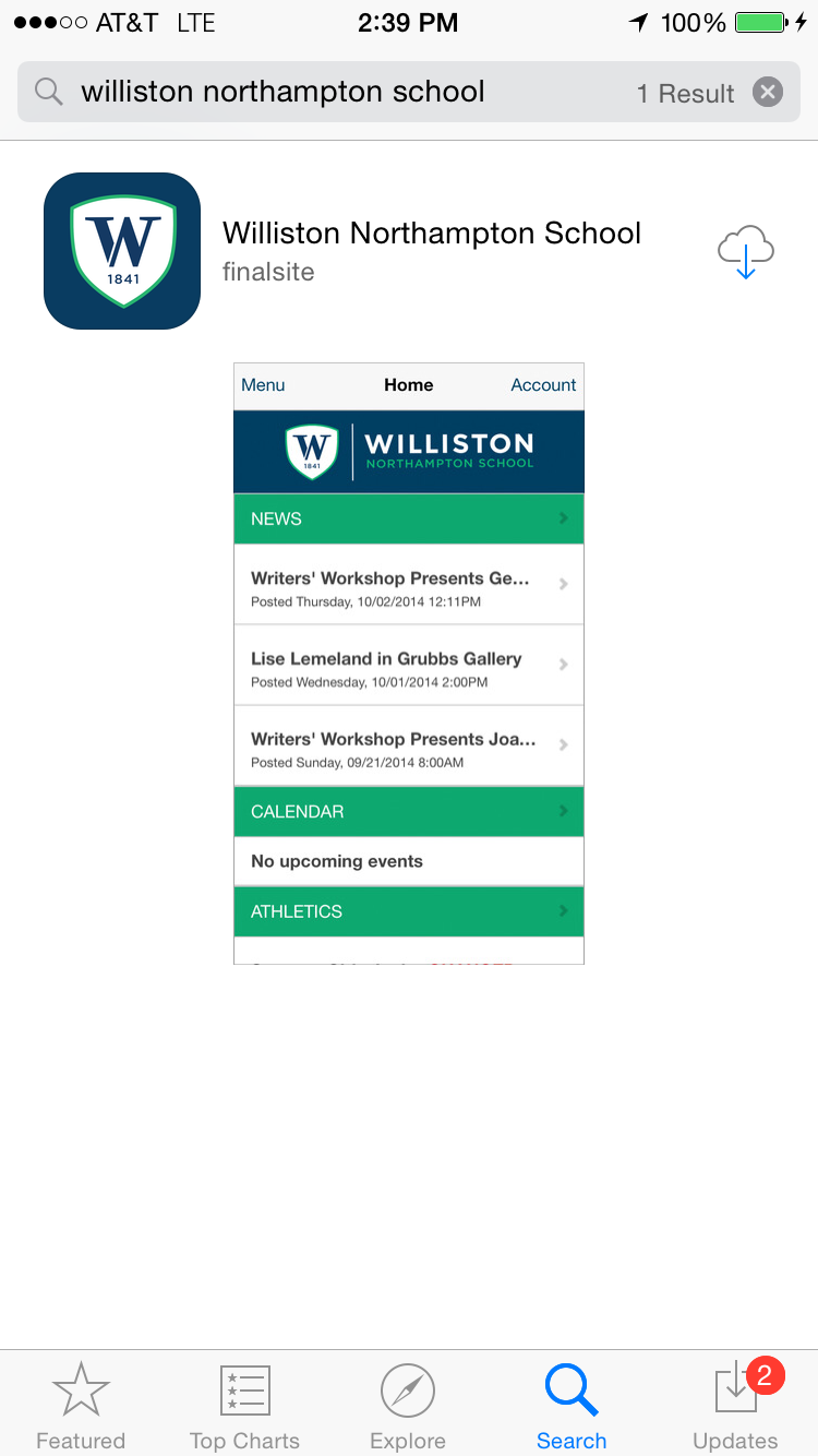To find the app, search for “Williston Northampton School” in the Apple iTunes store (look for the school’s logo). The first time you open it, the app will take you through a fast, three-step demo.