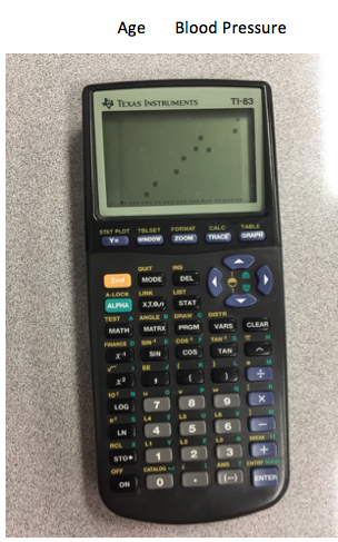My Algebra 1 class has been studying equations of lines. Today before the break we decided to see how real data could have a linear relationship! Here is an example of the data a student found on blood pressure rates and age.