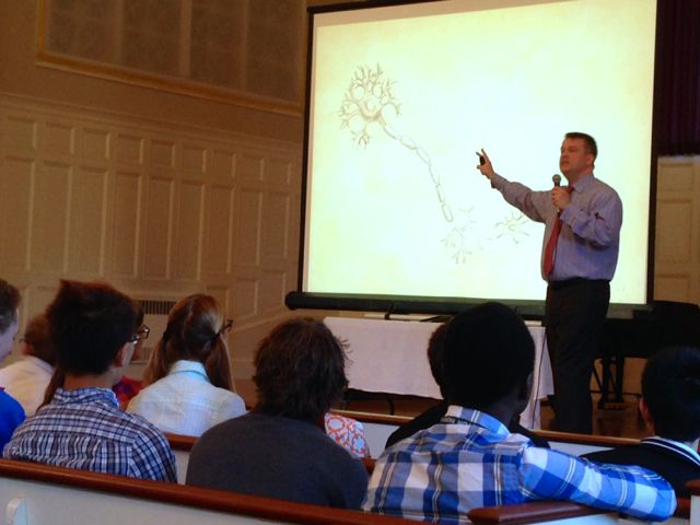 Mr. Watson, of Translate the Brain, had returned to the Williston Northampton School for his second year to talk about neurological studies and how those translated into studying more effectively.